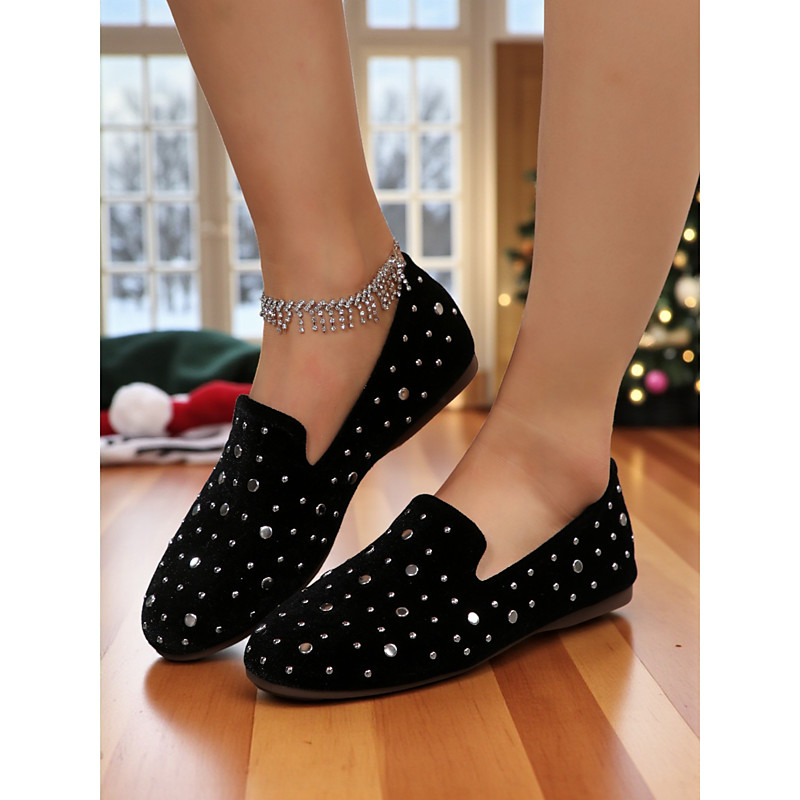 Women's Burgundy Velvet Slip-On Flats with Studded Detail, Stylish and Comfortable, Perfect for Casual Wear, Holiday Gatherings and Christmas Outings
