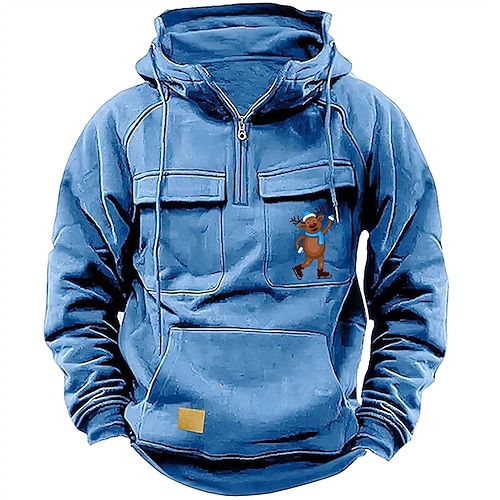 Per uomo Felpa con cappuccio Felpa con cappuccio e zip corta Nero Rosa Vino Blu Verde Con Cappuccio Animale di Natale Coulisse Tasca Sport Outdoor Quotidiano Ferie Natale Streetwear Casual