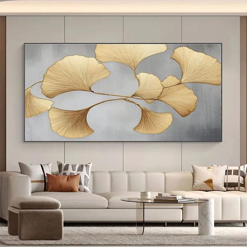 Hand Painted Golden Ginkgo Leaves Canvas oil painting hand painted Metallic Floral Wall Art Abstract Leaf Design Luxury Home Decor Modern Canvas Decoration