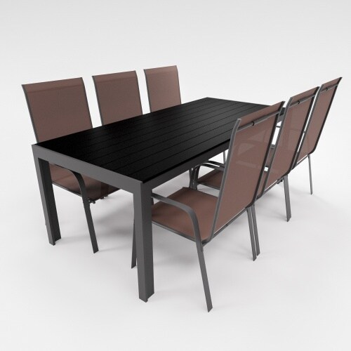 Lex Gartenmöbel Set Alu Tisch 7-tlg. 6x Stapelsessel Essgruppe Gartenset schokobraun Sitzgruppe : Schokobraun