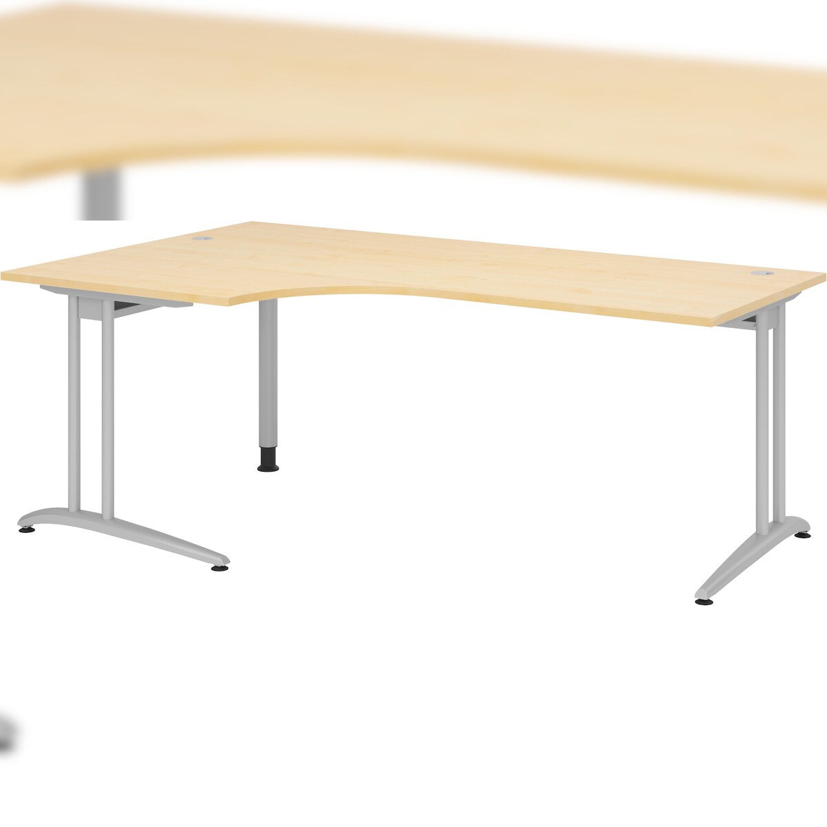 bümö Eckschreibtisch groß, B-Serie 200x120 cm, Tischplatte aus Holz in Ahorn, Gestell aus Metall - Schreibtisch L Form, großer Tisch für's Büro,