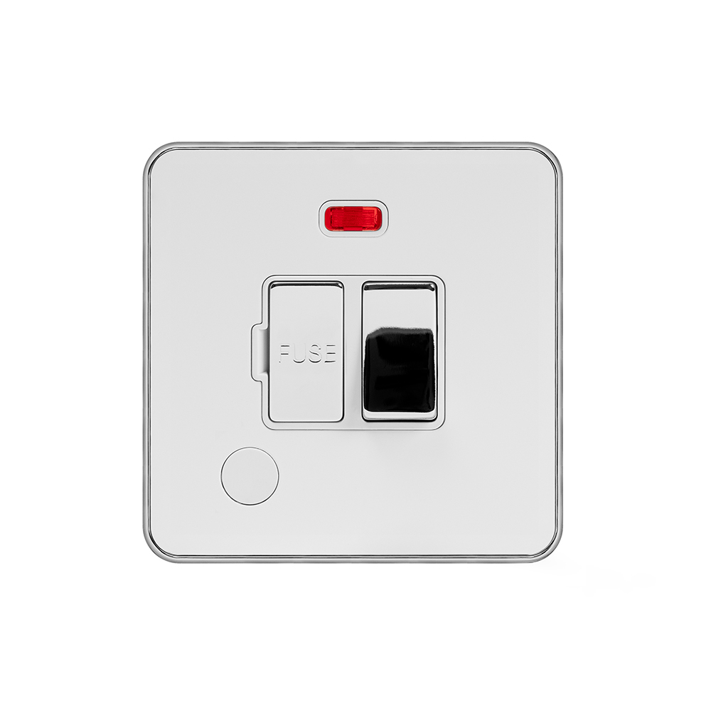 Soho Lighting White Metal with Polished Chrome Flat Plate 13A Switched Fused Connection Unit (FCU) Flex Outlet With Neon Screwless