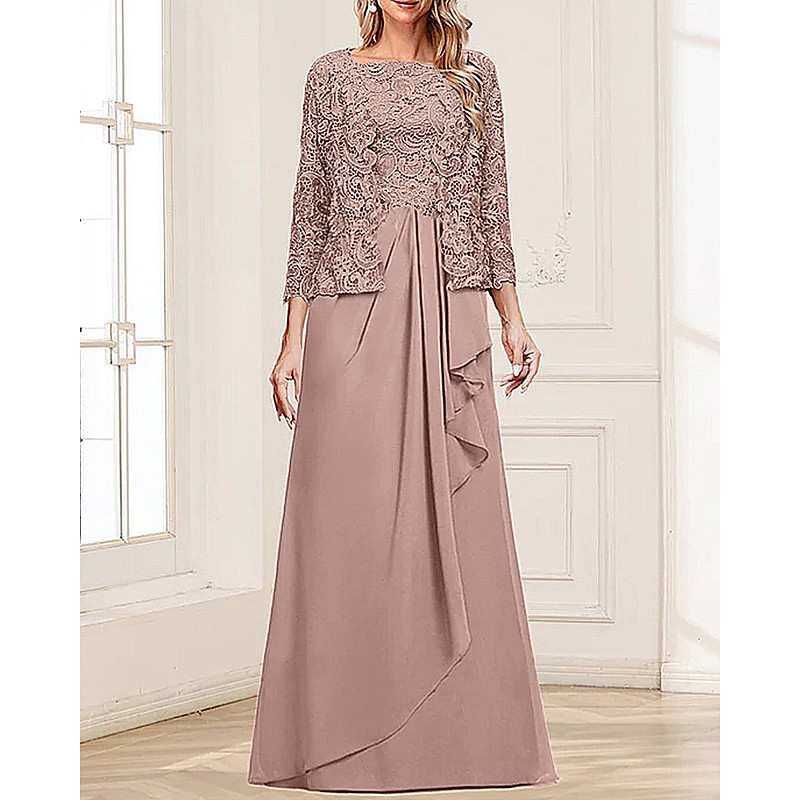 Two Piece A-Line Floor Length Wedding Guest Dress Mother of the Bride Dress Sleeveless 3/4 Length Sleeve Square Neck Elegant Simple Minimalist Formal Wedding Guest Chiffon Corded Lace with Pleats