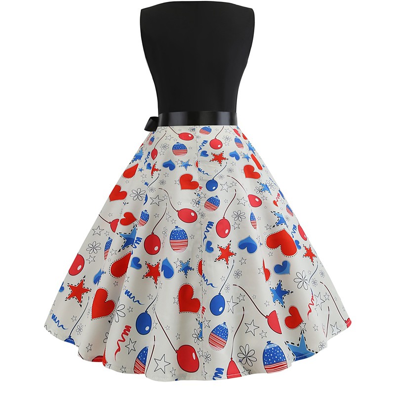 1950s American 250 Retro Vintage Dress Swing Dress Sleeveless A-Line Fancy Dress Women's 4th of July Independence Day Semiquincentennial Adults' Dress Spring Summer
