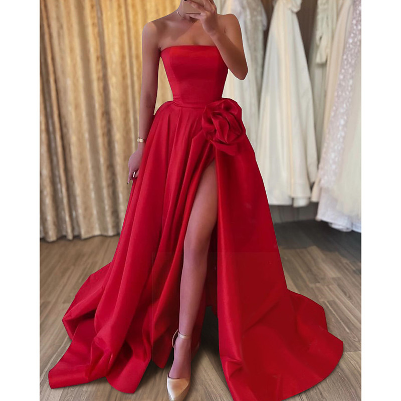 A-Line Floor Length Prom Dresses Evening Gown Ball Gown Formal Dress Elegant Sleeveless Strapless Carnival Formal Satin with Appliques