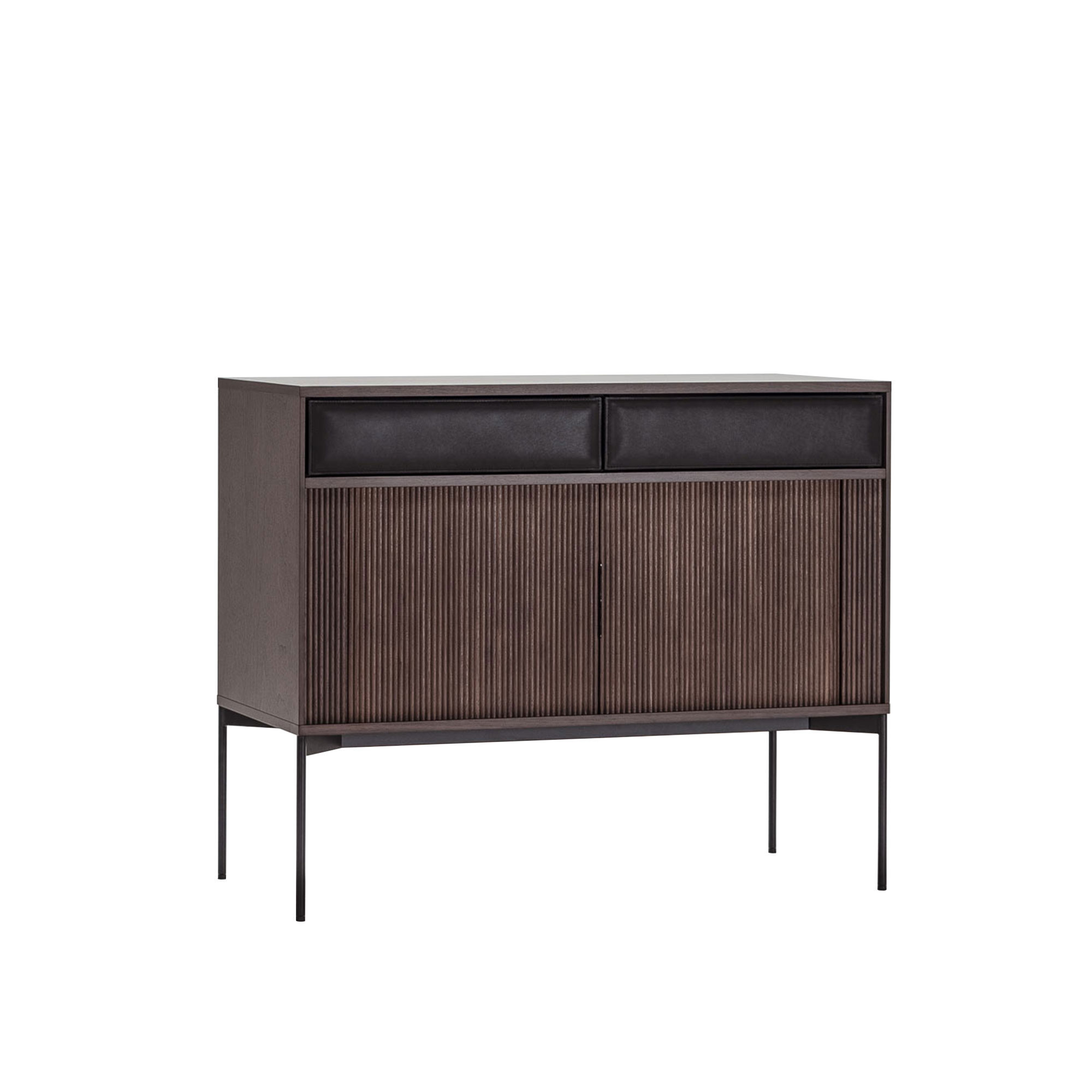 Ritzwell - Jabara JB 2112 Sideboard, Oak Frame Body A, Natural Urethane Frame Black Thick Leather Front Drawer - Sideboards - Shinsaku Miyamoto - Brun - Läder/Metall/Trä