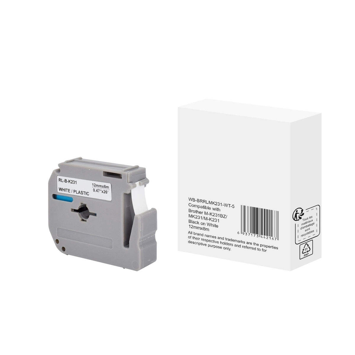 Schriftband wie Brother MK231 12mmx8m schwarz auf weiß