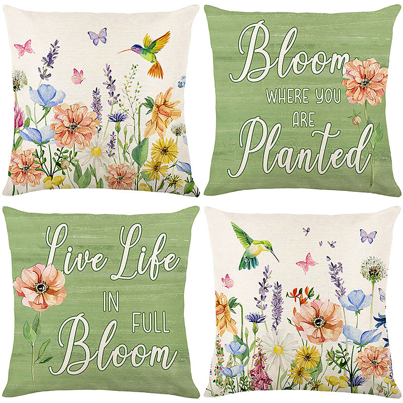 Floral Decorative Toss Pillows Cover 4PC Soft Square Couch Cushion Case Pillowcase for Bedroom Livingroom Sofa Chair