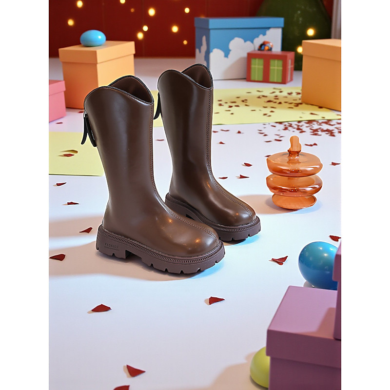 Korean Idol Inspired Pop Star Costume Shoes Girls' White Faux Leather Knee-High Boots with Side Zipper and Chunky Sole for Dance Performances and Casual Wear
