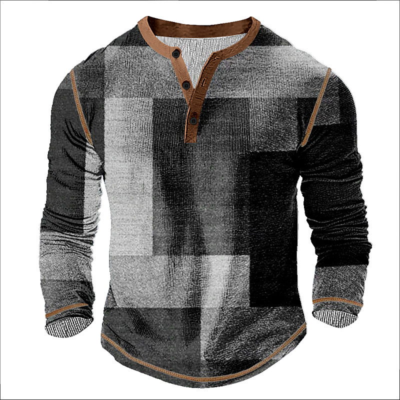 Men's Graphic Abstract Henley Shirt Tee Long Sleeve Vintage Fashion Designer Outdoor Casual Daily Spring Fall All Seasons Dark Grey Green Dark Blue Purple Henley Henley T-Shirt