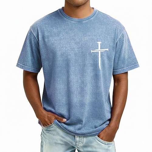 T-shirt croce della Bibbia da uomo maglietta a maniche corte acid wash collo giro vintage retro casual spiaggia viaggio blu viola grigio estate primavera abbigliamento