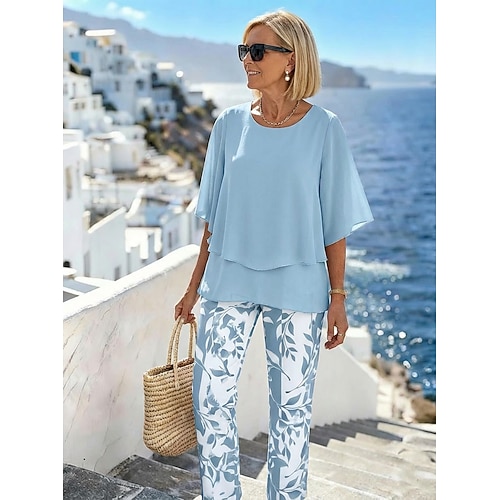 Set di 2 pezzi da donna moda streetwear pantaloni abbigliamento quotidiano maniche corte collo giro floreale grafico vacanza casual quotidiano rosa blu azzurro estate taglio largo