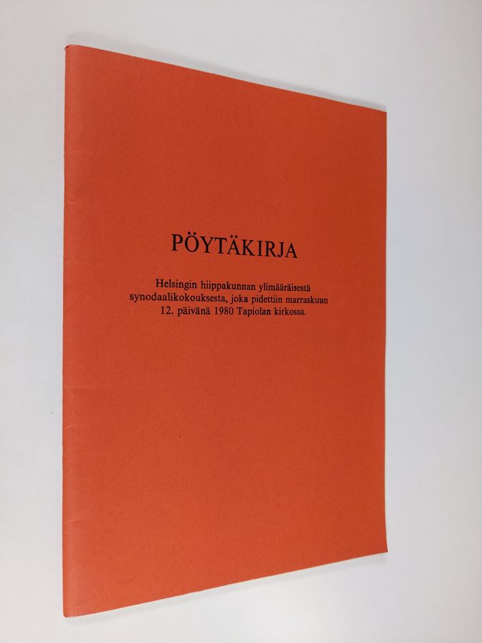 Pöytäkirja Helsingin hiippakunnan ylimääräisestä synodaalikokouksesta, joka pidettiin marraskuun 12. päivänä 1980 Tapiolan kirkossa