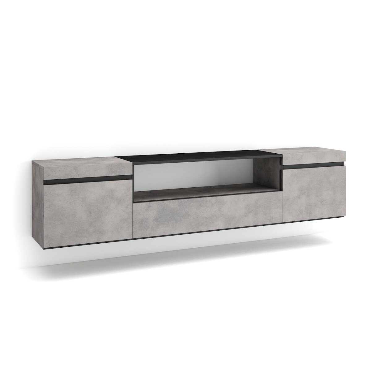 SKRAUT HOME Wohnzimmer-TV-Schrank, Viel Stauraum, 200x35x45cm, Für TV-Geräte bis 80“, Hängend, Moderner Stil, Zementgrau - 51_19