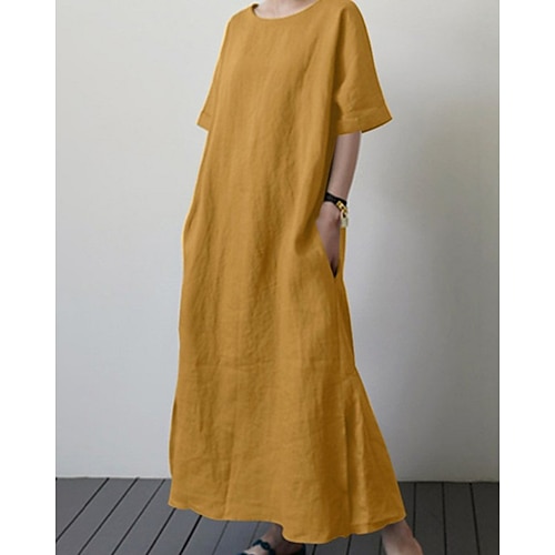 Per donna Abito Midi Abito in cotone e lino Classico Moderno Vacanza Quotidiano Ferie Vestibilità regolare Semplice Manica Corta Girocollo Nero Giallo Verde Estate