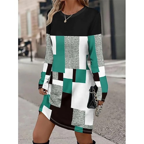 Per donna Abito Midi Abito a trapezio Casual All'aperto Uscire Vestibilità regolare Grafico Blocco di colori Manica Lunga Girocollo Vino Blu Verde Grigio Primavera Autunno