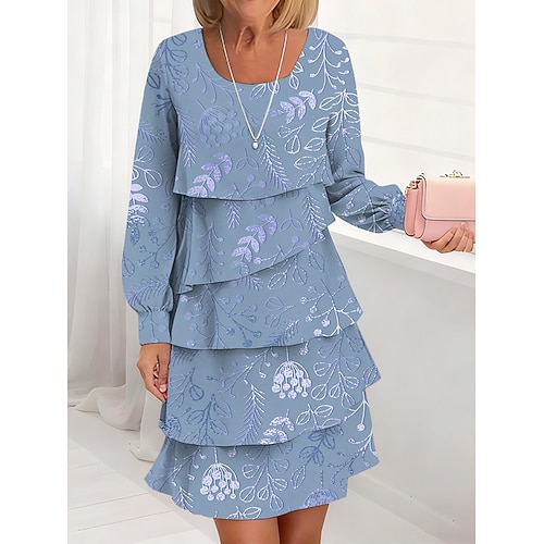 Per donna Mini Abito Abito a Tubino Casual Ferie Uscire Weekend Vestibilità regolare Floreale Grafico Manica Lunga Girocollo Blu Rosa Viola Verde Primavera Autunno Inverno