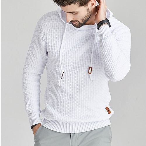 Herren Pullover Pullover Hoodie Gerippt Gedrehtes Stricken Cropped Strick Feste Farbe Mit Kapuze Stilvoll Basic Outdoor Täglich Bekleidung Herbst Winter Schwarz Weiß S M L