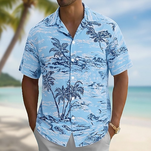 Per uomo Albero di Cocco Natura e paesaggi Piante Tropicali Camicia hawaiana estiva Camicia con Bottoni Camicia Aloha Manica Corta Hawaiano Vacanza Abbigliamento mare Estate Primavera Collo ripiegato
