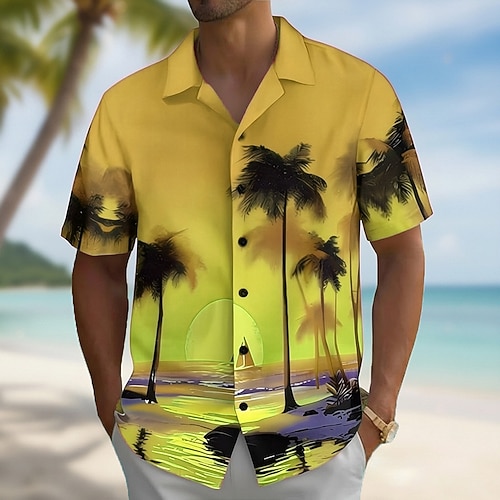 Per uomo Albero di Cocco Tramonto Piante Tropicali Camicia hawaiana estiva Camicia con Bottoni Camicia Aloha Manica Corta Hawaiano Casuale Vacanza Estate Primavera Collo ripiegato Stampa 3D camicie