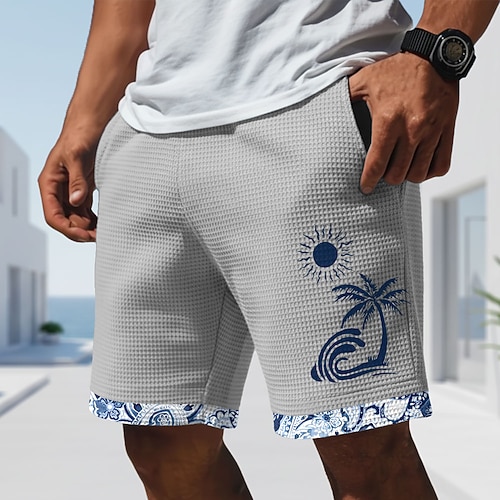 Per uomo Albero di Cocco Stampa Floreale Fiori tropicali Pantaloncini Waffle Pantaloncini casual Pantaloncini strutturati Misura del girovita medio Camicia hawaiana All'aperto Vacanza Coulisse