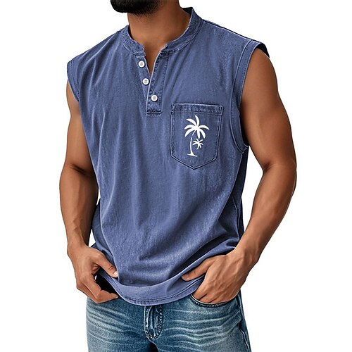 Per uomo Camicia 100% cotone lavaggio acido Maglietta senza maniche Senza Maniche Henley Estate Noce di cocco Casual Henley Tinto in capo Sbiadito Grafico Casuale Quotidiano Abbigliamento casual alla