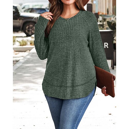 Per donna Felpa Casual Morbido Blocco di colori A Coste Girocollo Lavorato a maglia Manica Lunga Top Regolari Maglia All'aperto Quotidiano Weekend Blu Nero Autunno Inverno