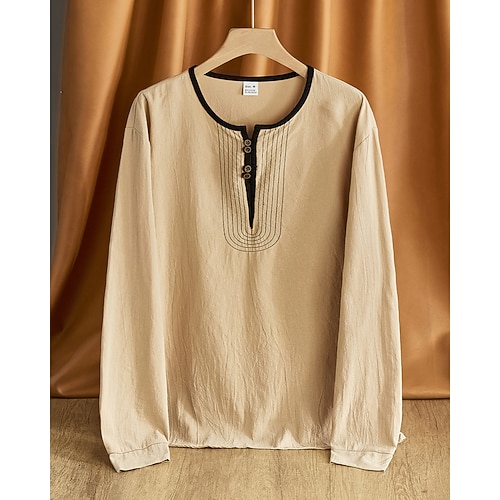 Per uomo Camicia Camicia di lino Camicia casual Camicia con Bottoni Camicia di cotone Semplice Vacanza Camicia hawaiana Nero Bianco Cachi Azzurro Manica Lunga Colletto alla coreana Primavera Autunno