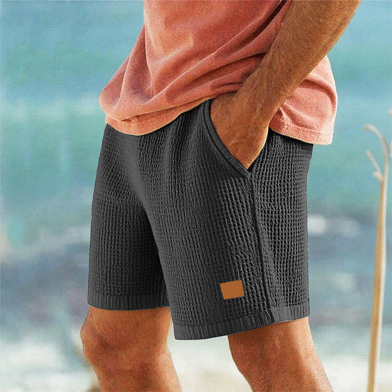 Men's Waffle Shorts Shorts Summer Shorts Casual Shorts Pocket Elastic Waist Drawstring Plain Comfort Breathable Short Outdoor Vacation Sport Casual Black White