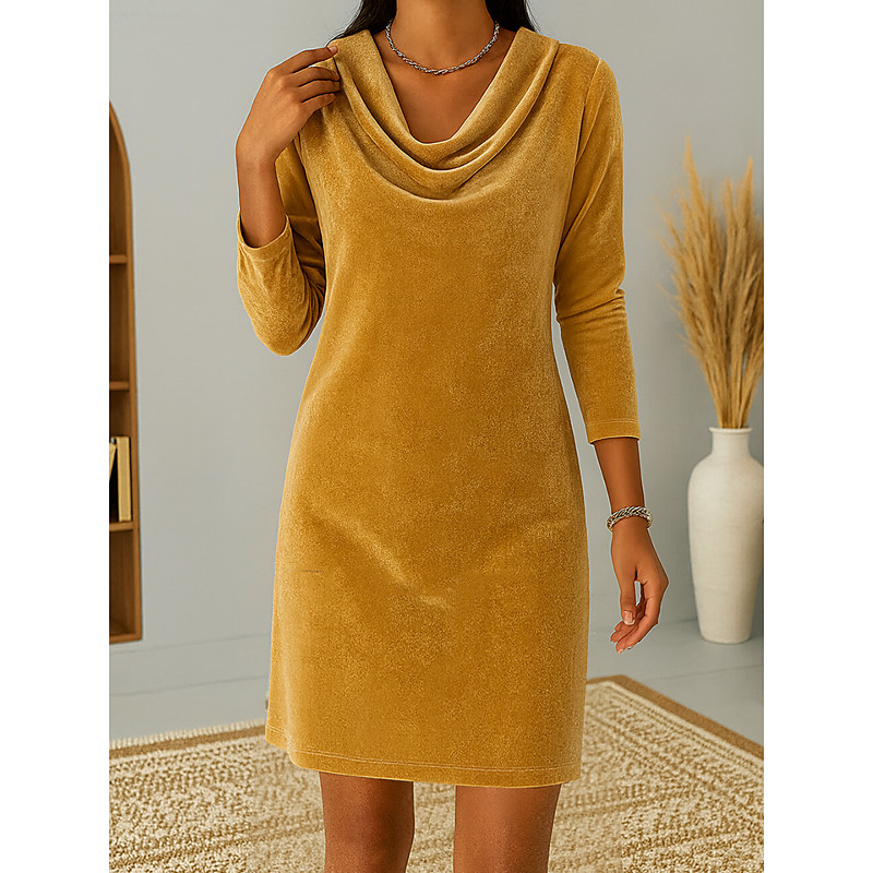 Women's Blue Light Blue Black Fall Winter Mini Dress Shift Dress Party Formal Formal Regular Fit Plain Cowl Neck
