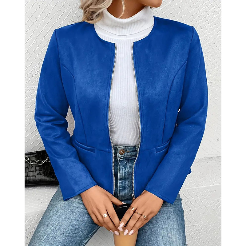 Women's Winter Coat Windproof Warm Patchwork Zipper Pocket Elegant Active Fashion Cute Solid Color Outdoor Vacation Home Work Regular Crewneck Regular Fit Long Sleeve Outerwear Blue Fall Winter