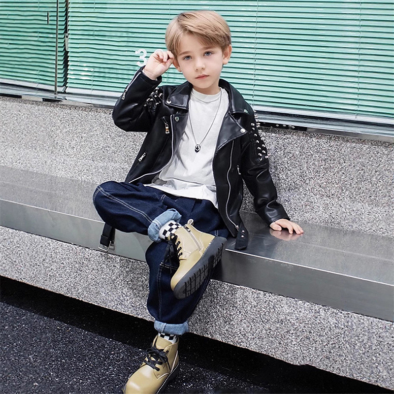 Kid's Boys' Black Leather Jacket Jacket Outerwear Plain Long Sleeve Zip Up Waterproof Windproof Coat Daily Fashion Casual Black Spring Fall 4-12 Years