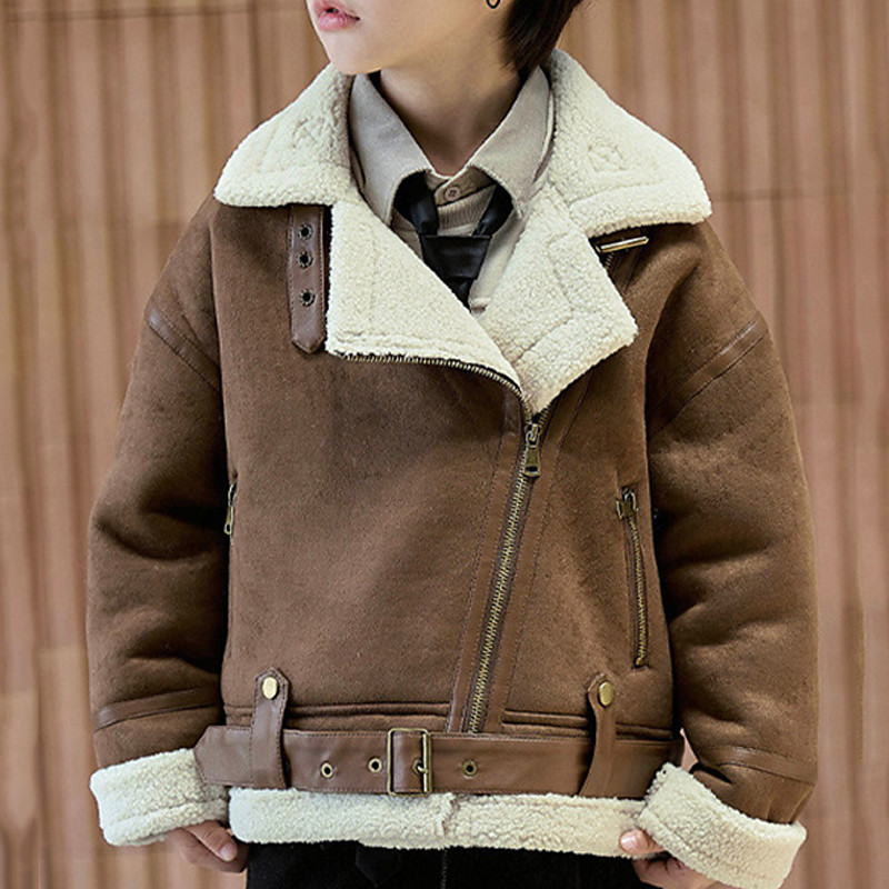 Kid's Boys' Faux Suede Jacket Fleece Jacket Jacket Outerwear Plain Long Sleeve Zip Up Keep Warm Windproof Coat Daily Fashion Casual Camel Brown Fall Winter 4-12 Years