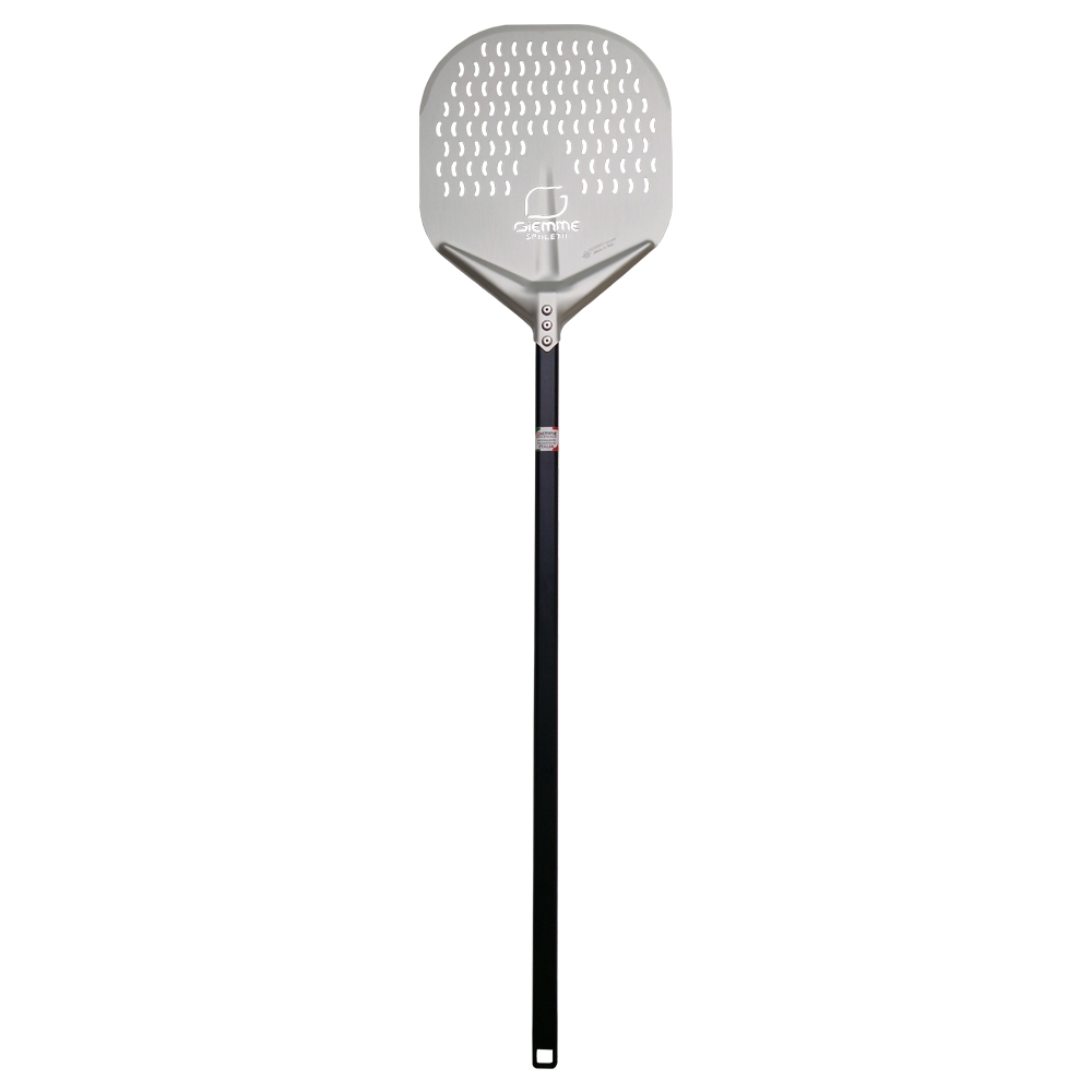 Giemme Spoleto - Rechteckige perforierte Pizzaschaufel, Schaufelblatt 41 cm, roter Stiel 90 cm, für professionelle Öfe