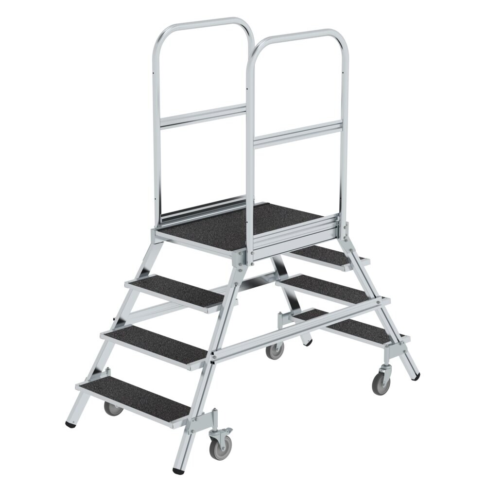 PROREGAL Podesttreppe beidseitig begehbar mit Federrolle | Korundbeschichtung R13 | 4 Stufen | Rutschsichere Leiterschuhe