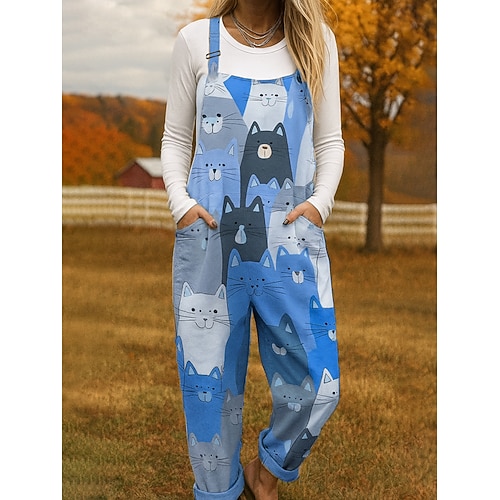 Salopette da donna in 100% cotone, leggera, grafica, senza maniche, dritta, scollo quadrato, tasca con taschino, per le vacanze, per tutti i giorni, vestibilità ampia, rosa, blu, viola, estate