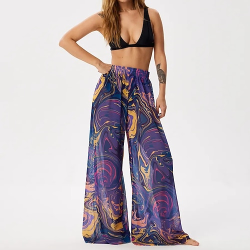 Per donna Pantaloni da vacanza al mare Palazzo casual fluido Pantaloni a gamba larga Grafico Protezione UV Traspirante Chiffon Pantaloni Boho Ampio Surf Spiaggia Vacanze Autunno