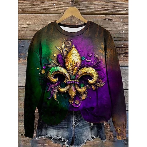 Felpa con cappuccio da donna Carnival grafica astratta casual a maniche lunghe collo tondo ampio indumenti casual quotidiani blu viola verde autunno inverno
