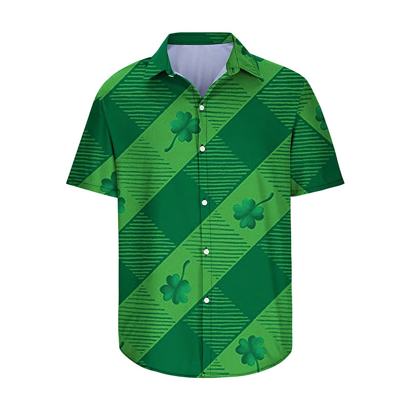 St.Patrick's Day Four Leaf Clover Casual Men's Shirt Daily Wear Going out Weekend Autumn / Fall Turndown Short Sleeves Black, Dark Green, Green S, M, L 4-Way Stretch Fabric Shirt St.
