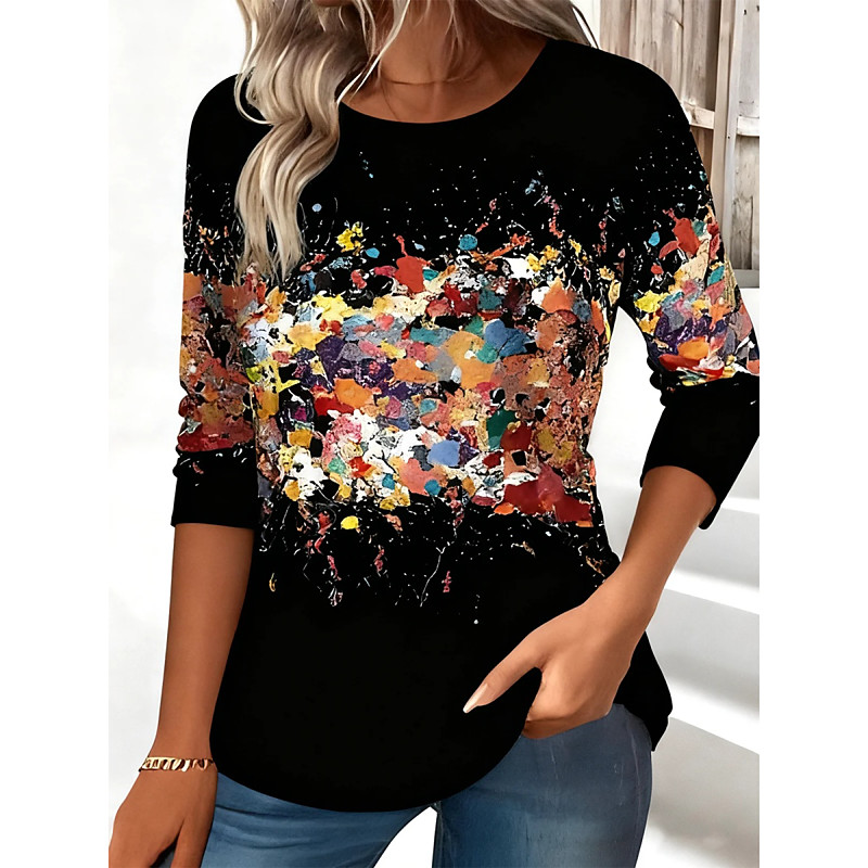 Women's T Shirt Graphic Fashion Classic Casual Long Sleeve Crew Neck Regular Tops Daily Weekend Vacation Wear Print Black White Pink Green Light Grey Summer Spring Fall