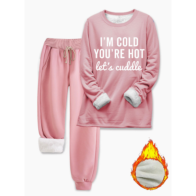 Women's Elegant Warm Fashion Two Piece Sets Tracksuit Pants Sets Long Sleeve Bishop Sleeve Crew Neck Graphic Letter Print Outdoor Vacation Daily Black Pink Dark Pink Spring Regular Fit