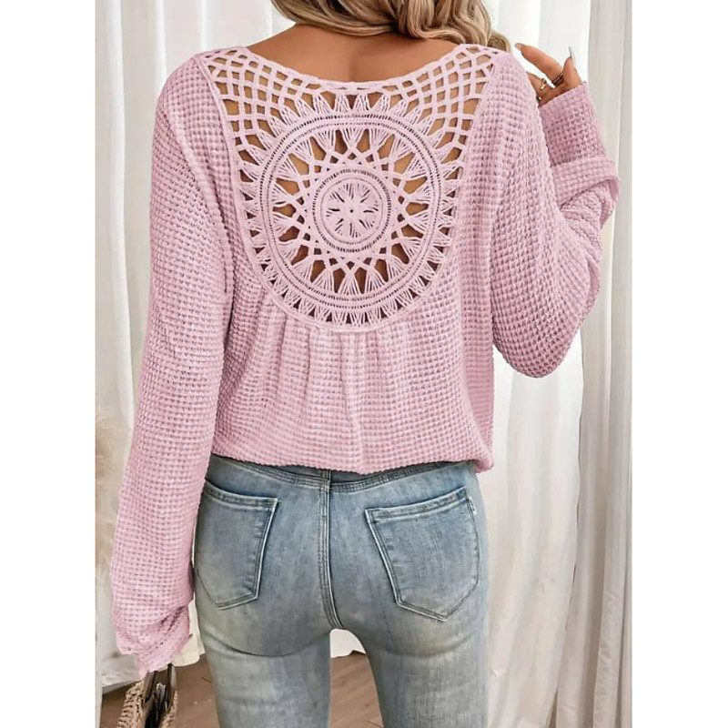Women's White Elegant Lace Tops Eyelet Blouse Stylish Casual Solid Color Eyelet Long Sleeve Crew Neck Daily Romantic Petite Tops Summer Holiday Wear Grass Green Pink Blue Beige Summer Spring Fall