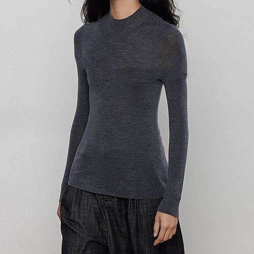 Per donna Blusa Tinta unica Elegante Casual Manica Lunga Collo Alto Top Regolari Quotidiano Cerniera Tasca Nero Bianco Vino Cachi Grigio Primavera Autunno Inverno