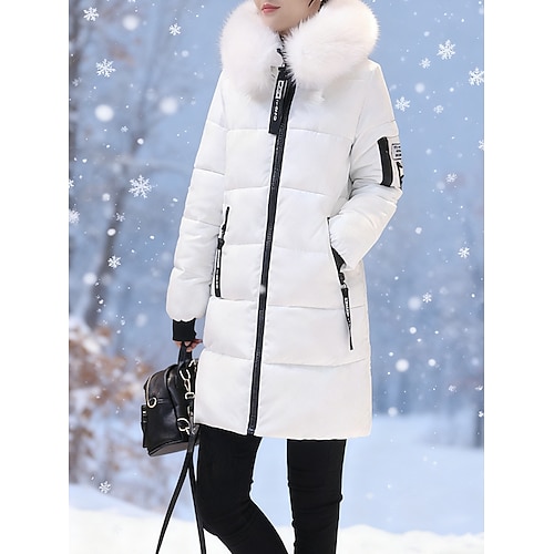 Per donna Cappotto Invernale Giacca Piumino Caldo Confortevole Cerniera Tasca Casual Tinta unica Vacanza Abbigliamento quotidiano Uscire Weekend Lungo Con Cappuccio Vestibilità regolare Manica Lunga