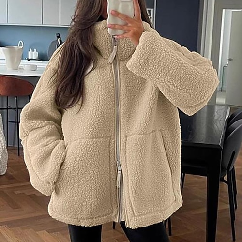 Per donna Cappotto Invernale Giacca Sherpa Giacca Casual Caldo Confortevole Cerniera Tasca Moda Casual Tinta unica Vacanza Casuale Abbigliamento quotidiano Uscire Regolare Collo alla coreana