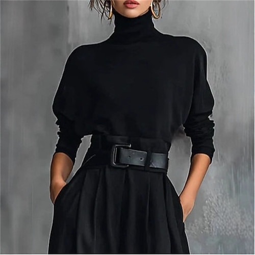 Per donna Moda Streetwear Maglietta Set di Pantaloni Bolero Top Manica Lunga Dolcevita Tinta unica All'aperto Vacanza Casuale Nero Marrone Grigio Autunno Vestibilità regolare