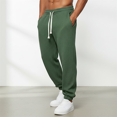 Per uomo Nido d'ape Pantaloni da tuta Joggers Pantaloni Pantaloni casual Coulisse Polsino elastico Tinta unica Comodità Lunghezza intera Quotidiano All'aperto Abbigliamento casual alla moda Vacanza