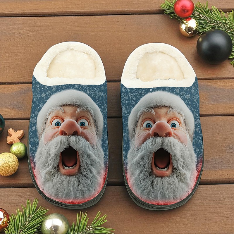 Men's Santa Claus Print Fleece Slippers, Funny Christmas Cartoon Indoor Shoes, Warm Plush House Slippers Perfect for Winter Holidays Gift Giving