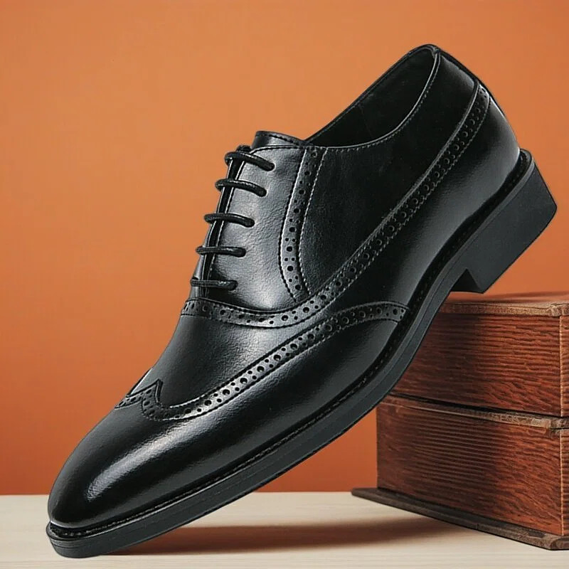 Men's Classic Lace-Up Faux Leather Oxford Shoes with Lightweight Sole – Perfect for Business, Casual and Office Wear