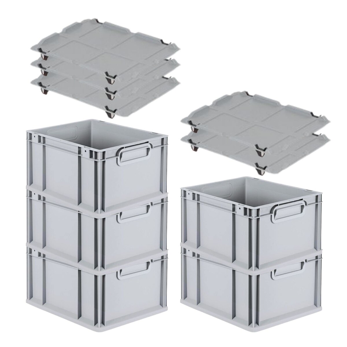 PROREGAL SparSet 5x Eurobox NextGen Grip mit Auflagedeckel & 4 schwarzen Verschlüssen, HxBxT 22x30x40cm, 20L, Grau, Griffe zu, Eurobehälter